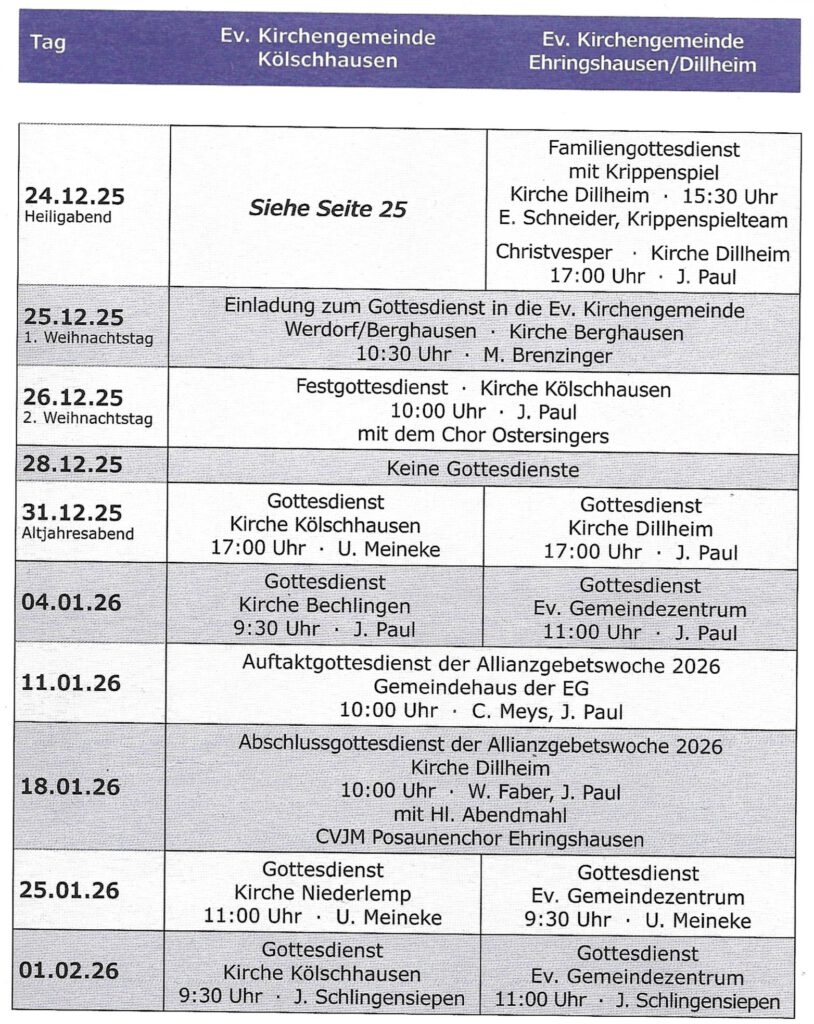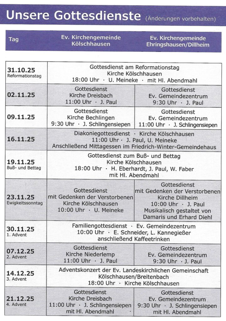 Wir feiern gemeinsame Gottesdienste und bringen unsere Verbundenheit in den Kirchengemeinden und in der Ökumene zum Ausdruck. Wir befähigen Einzelne, Gottesdienst feiern und leiten zu können.